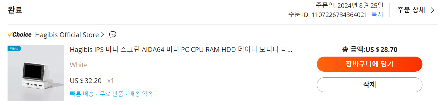 Aliexpress에서 28.70달러에 구입을 했고, 리뷰를 보니 대부분 해상도가 업그레이드된 2세대를 받았다고 해서 바로 구매 버튼을 눌렀습니다.