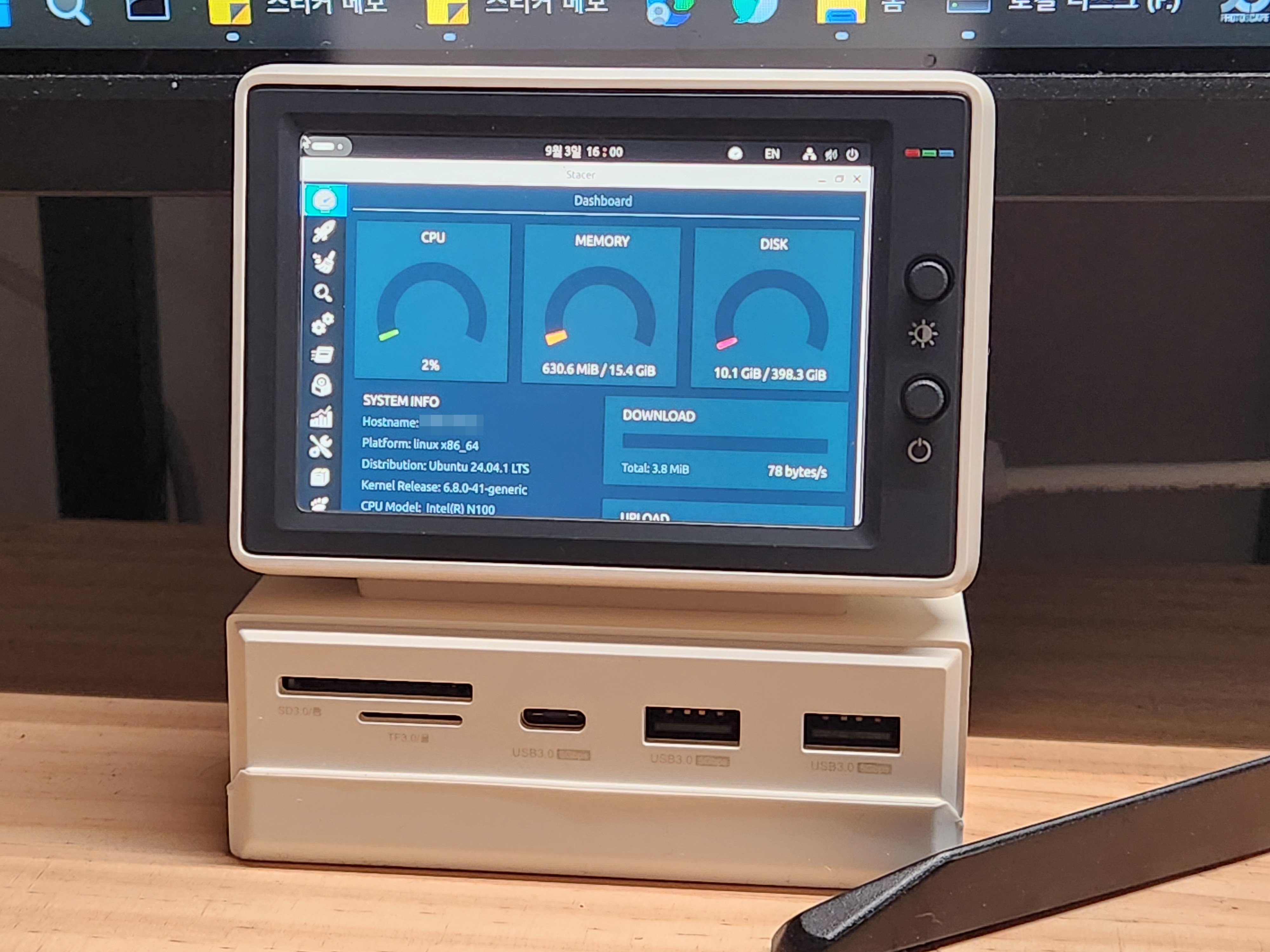 우분투에 Stacer를 설치해서 실시간으로 CPU와 Memory, Disk 모니터링을 해봤습니다. Stacer가 리소스를 많이 차지하지 않을 것 같았는데, 은근히 리소스를 많이 사용해서 프로세스를 종료하고 모니터를 꺼놨습니다. 미니 모니터는 책상 꾸미기 용으로 그냥 올려놓고, 가끔 미니 pc 상태를 확인할 때만 켜야 할 것 같습니다.